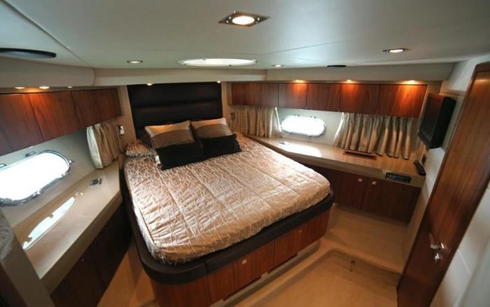Looking at the spacious cockpit with the wetbar, the dining area, and the large sunpad with companion seating, all of which are cues to the Sunseeker heritage, it is easy to think that the emphasis is on outdoor living. But one step below you find the saloon, galley, and lavish guest suites. The depth of comfort proves a tempting draw.